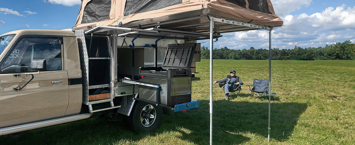 Nos glacières de overlanding sont alimentées par une prise voiture 12/24 V CC ou une prise 100-240 V CA (avec adaptateur), ou par du solaire 12-50 V.