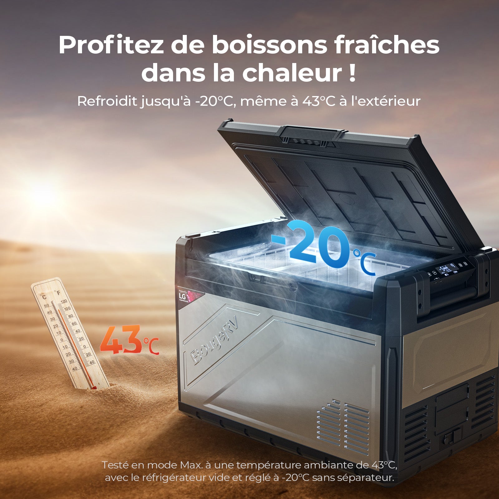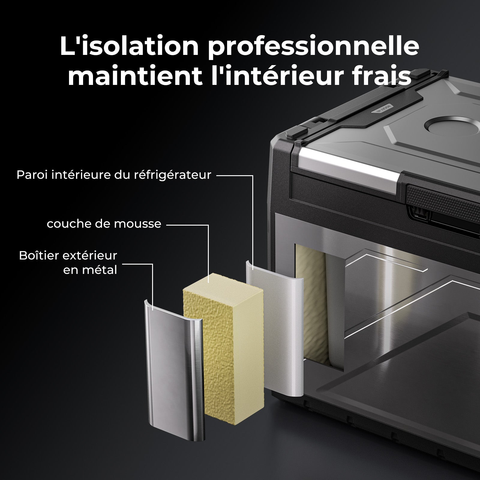 - Réfrigérateur métallique moderne robuste : conçu pour résister aux terrains les plus difficiles grâce à une construction en acier inoxydable durable et une capacité antichoc jusqu'à 40 °C.